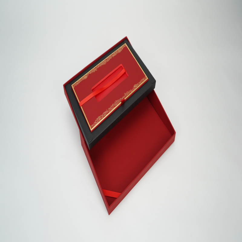 The box body is made of 150g VaiColour deep red tactile paper with logo hot stamping in matte gold design style, which is more stable and solemn. Unique trapezoidal flap structure design, the box is opened and flipped with its own support rack, turning into a merchandise display rack in seconds. It is a shaped box with both value and function.